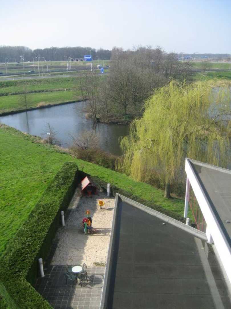 Ausblick aus unserem Zimmer. Blick auf den See und den Spielplatz.