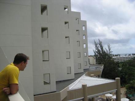 Blick von Balkon zu Gebäude