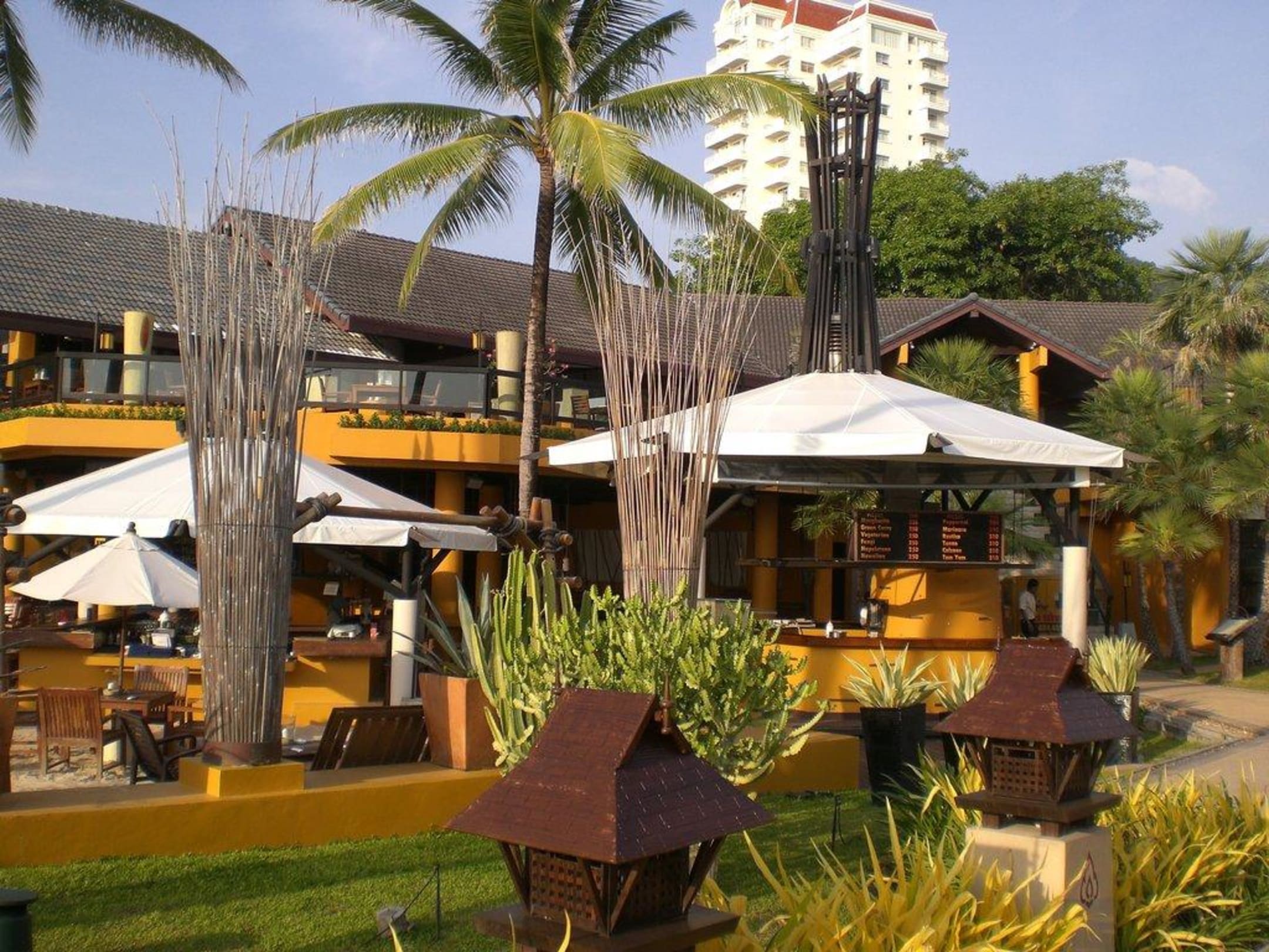 StrandbarBuy 1 - Get 1 free in der Happy Hour von 17.00 bis 19.00 (d.h. 2 Cocktails für ca. 6 Euro), abends Live Musik
