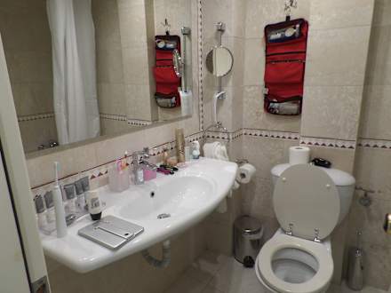 ZimmerDas Bad war überraschend gut ausgestattet, wenn auch etwas unpraktische eingerichtet (siehe Toilettenpapier)
