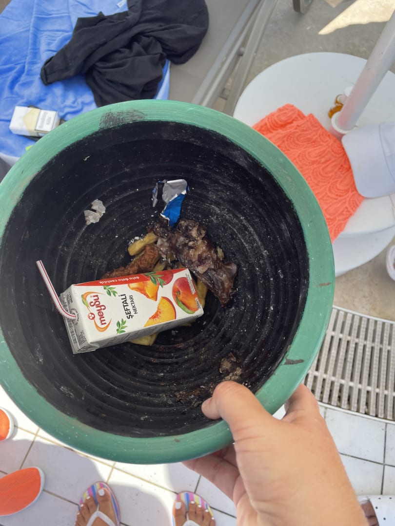 PoolMüllbehälter mit Essensresten werden nicht geleert, sehr lecker bei 40 grad im Schatten