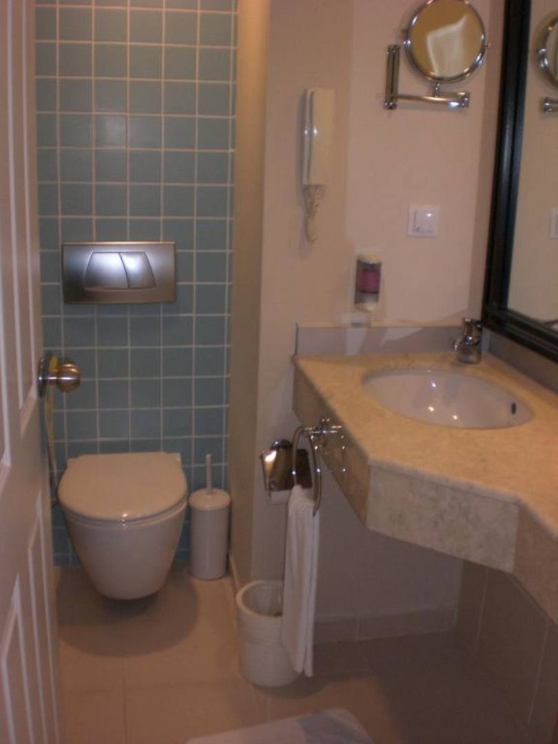 BadezimmerBadezimmer ist sehr klein :-( konnte man sich überhaupt nicht bewegen. Die Fliesen waren mit schimmel bedeckt.