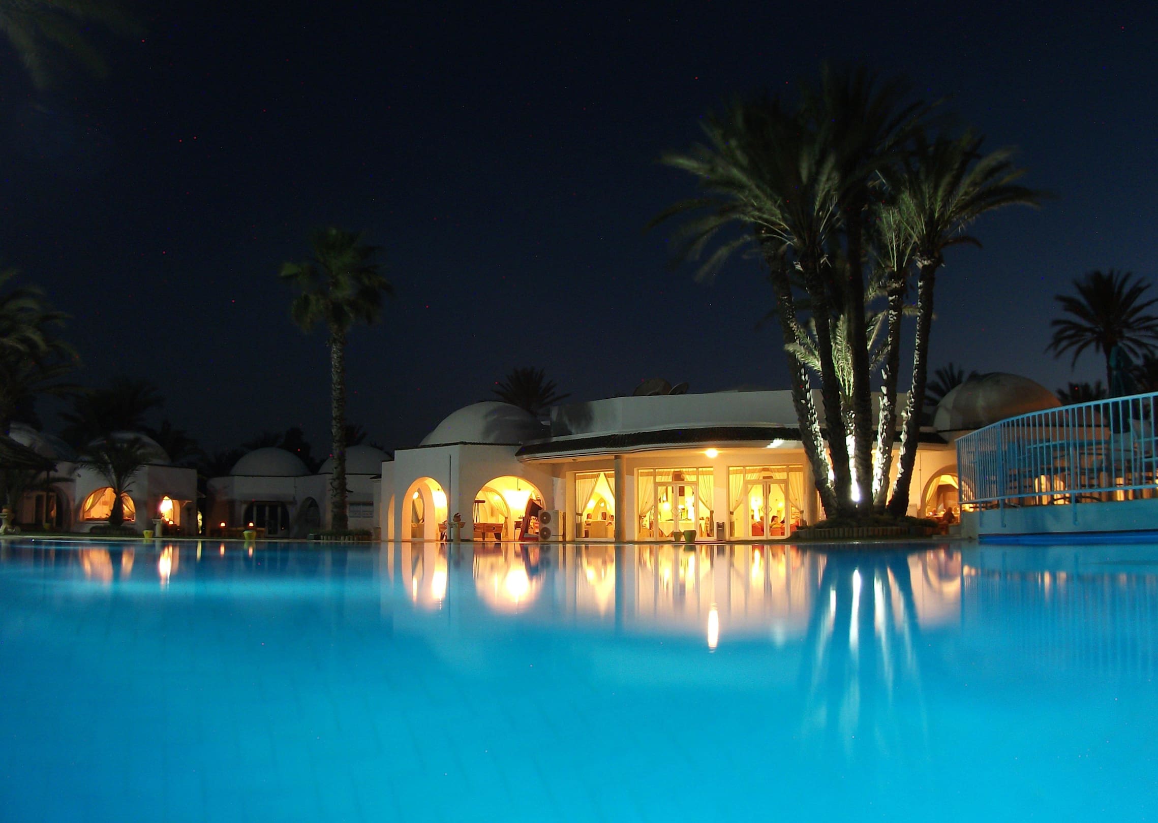 Lobby by night from the pool side