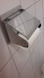 So sieht ein Klopapierhalter aus.sagen wir mal so. Er tut das, was er tun muss. Die Rolle halten. Und schön war, das kein hartes Papier drin war, sondern angenehmes.