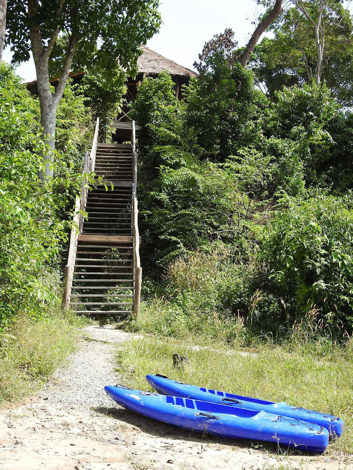 Kajaks mit Aufgang zum Restaurant