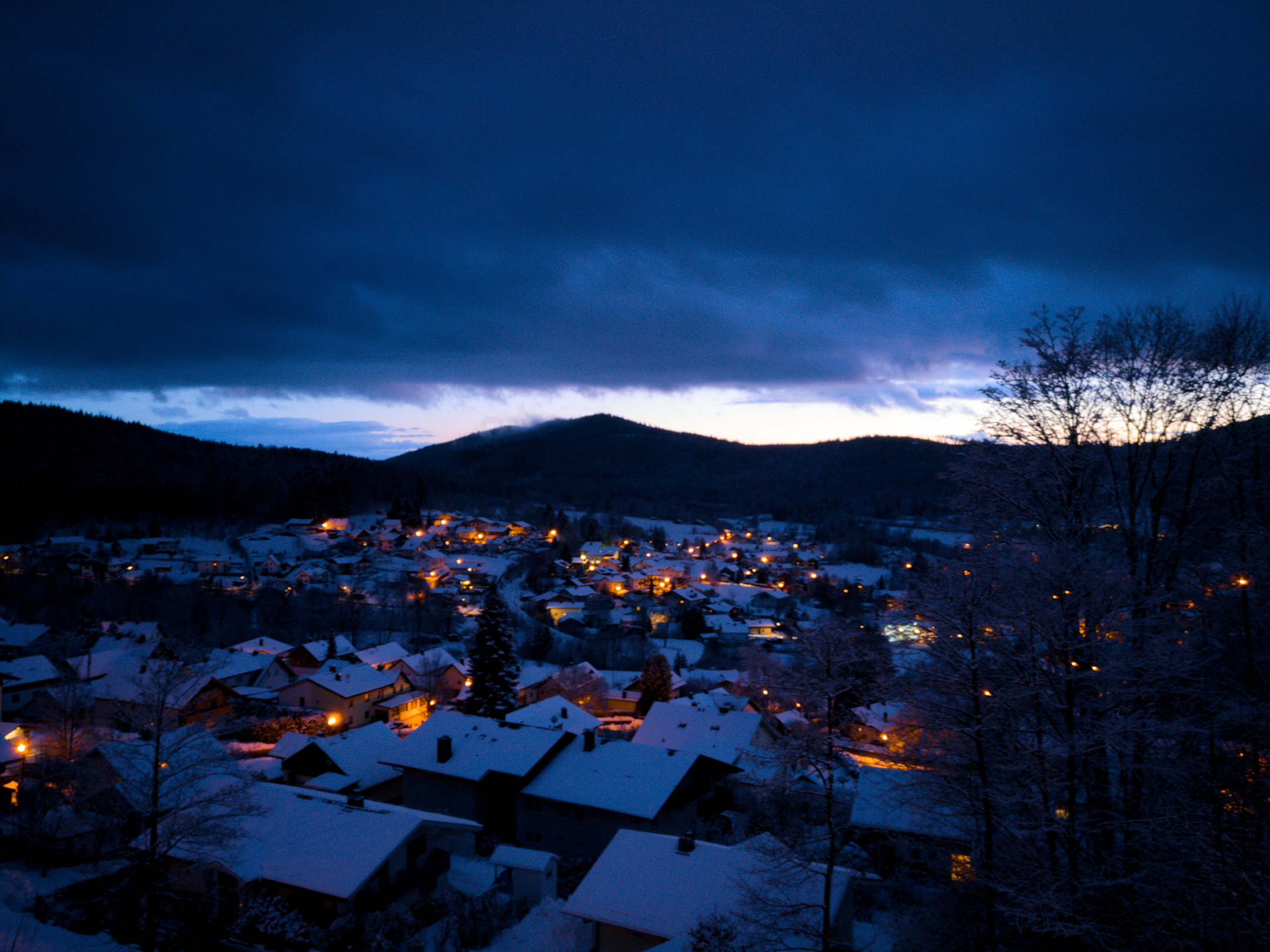AusblickBlick vom Balkon des Chalet in der Villa Montara zur Abenddämmerung.