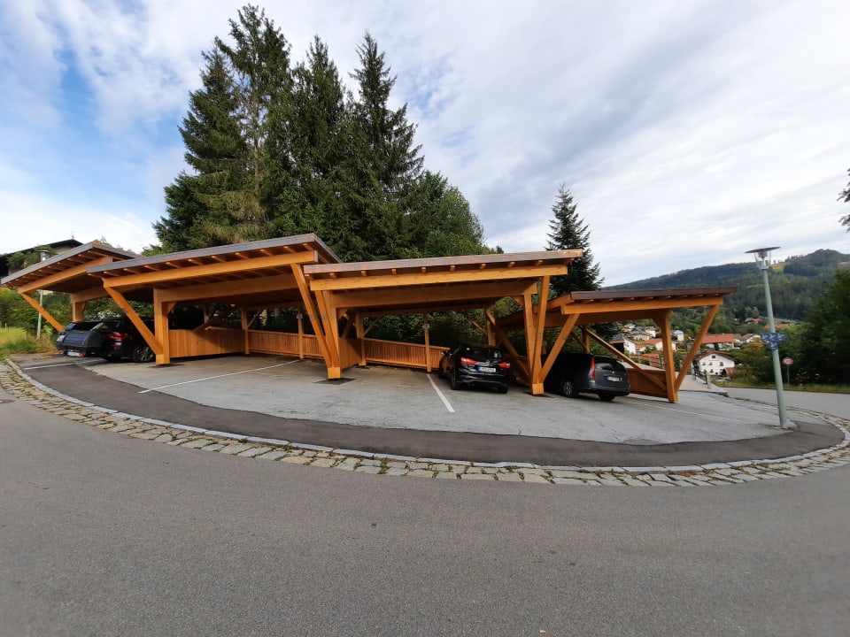 Sogar Carports gibt es jetzt, nicht nur bei Schnee, sondern auch bei Regen sehr angenehm!