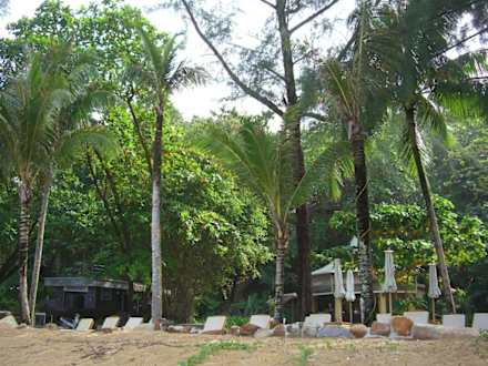 nur einige Meter vom Strand entfernt. Im Hintergrund das Restaurant.