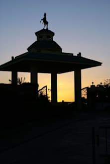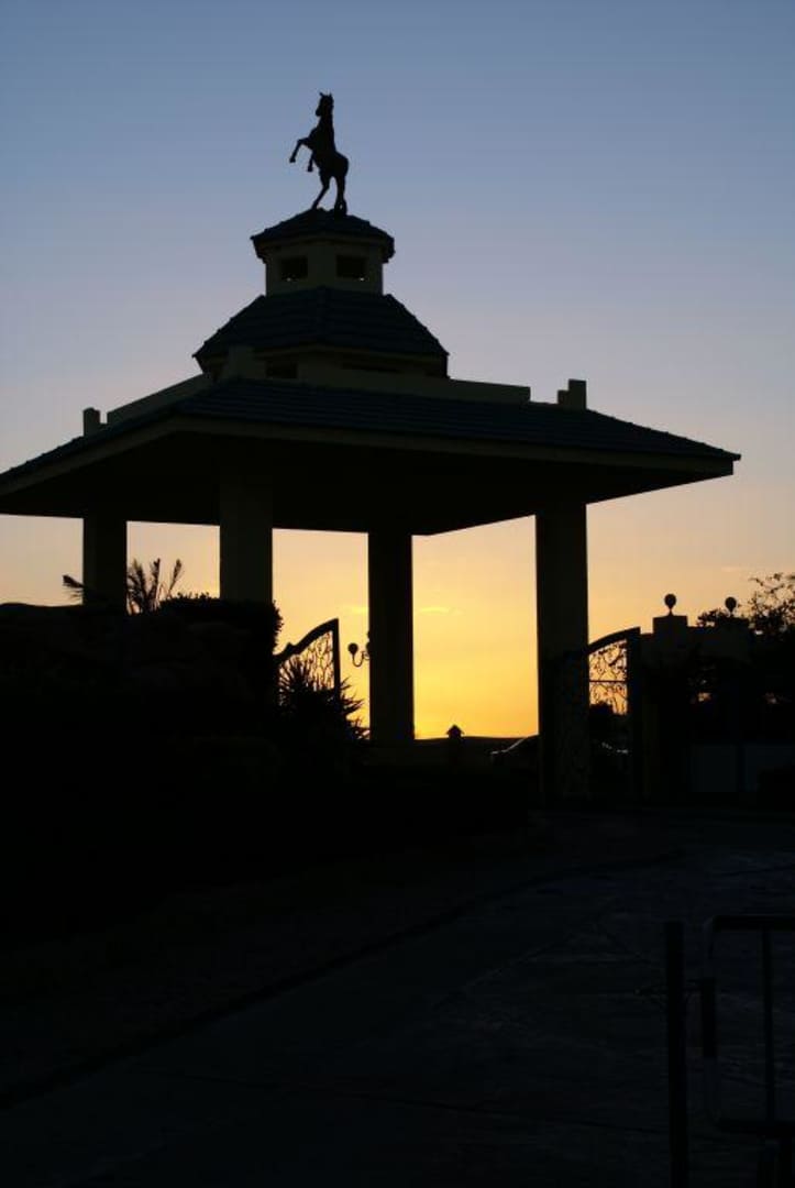 Hoteleingang bei Sonnenuntergang