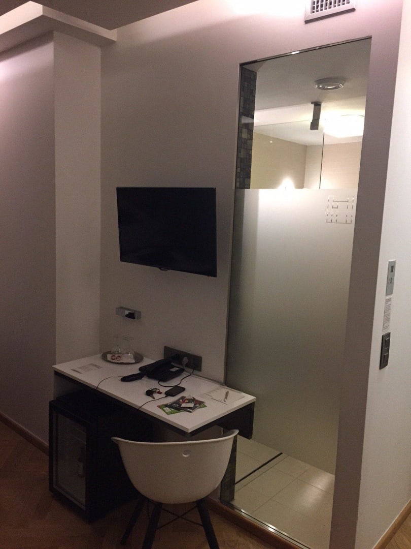Officebereich/ Glasfront trennt Dusche
