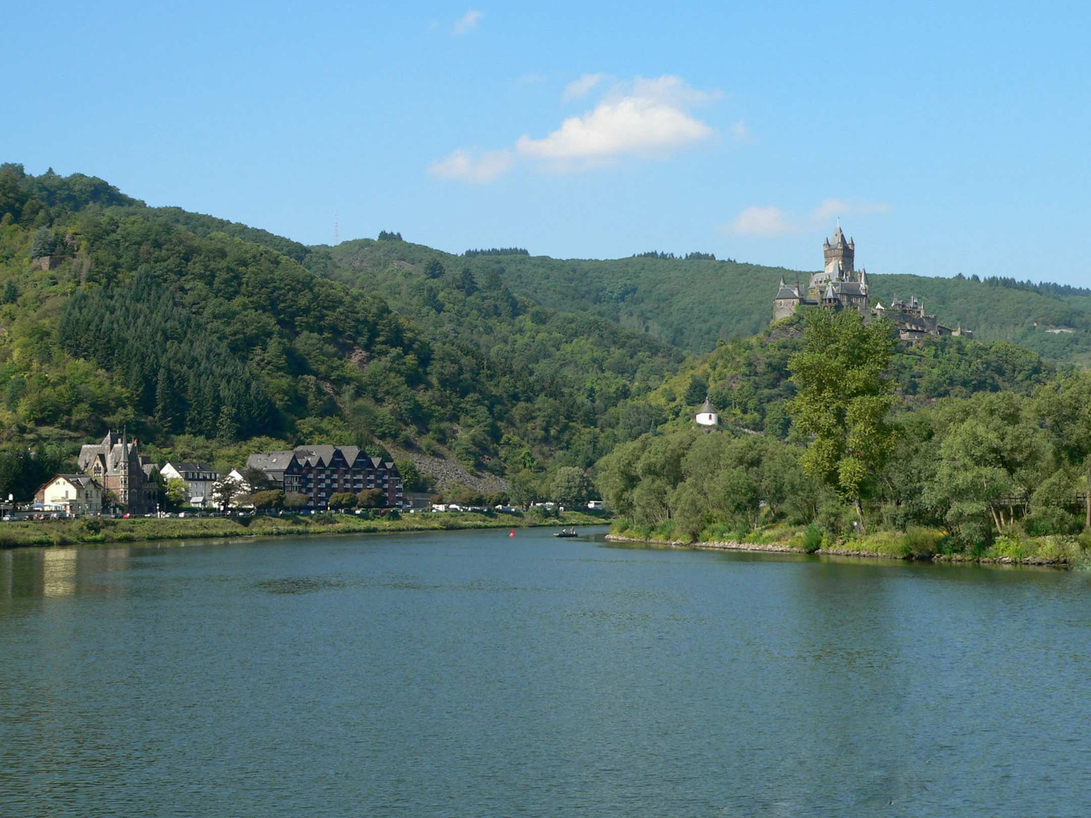 Moezel vaart uitzicht op Cochem en burg Elz