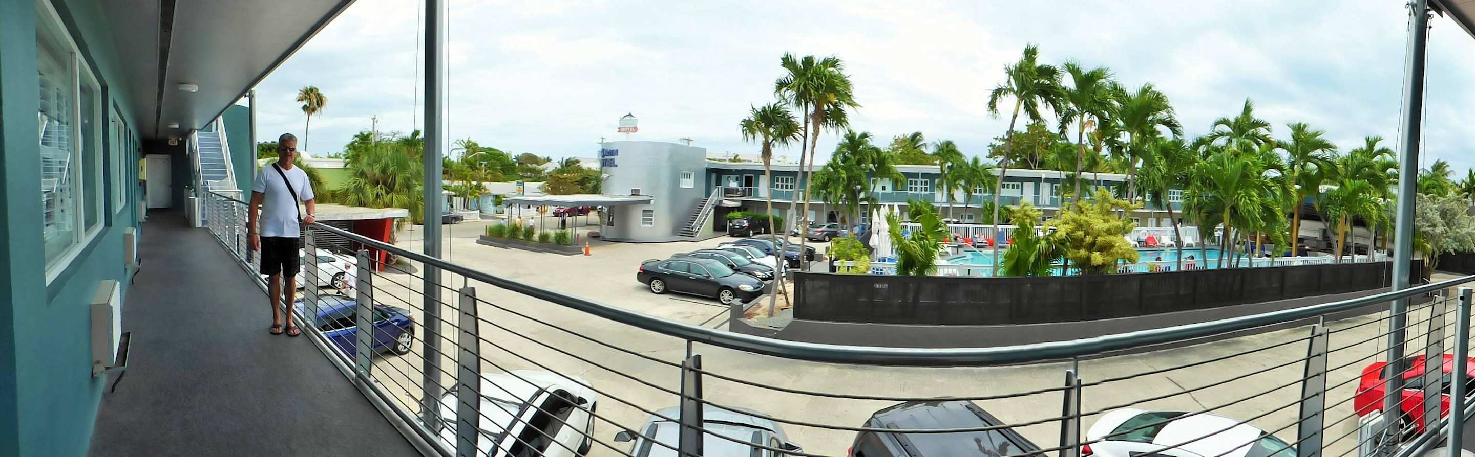 Panoramablick Parkplatz und Pool