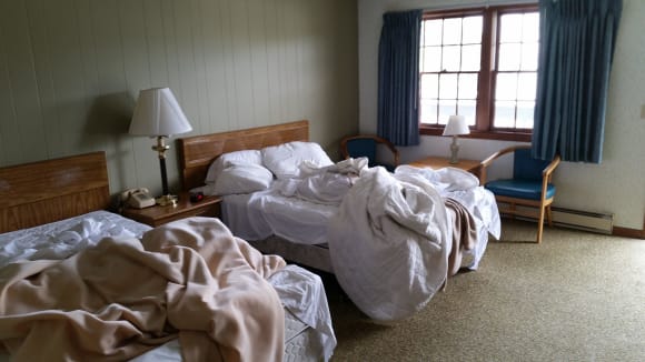 Betten im DoppelzimmerDass die Betten nicht gemacht sind liegt natürlich an uns, nicht am Hotel!