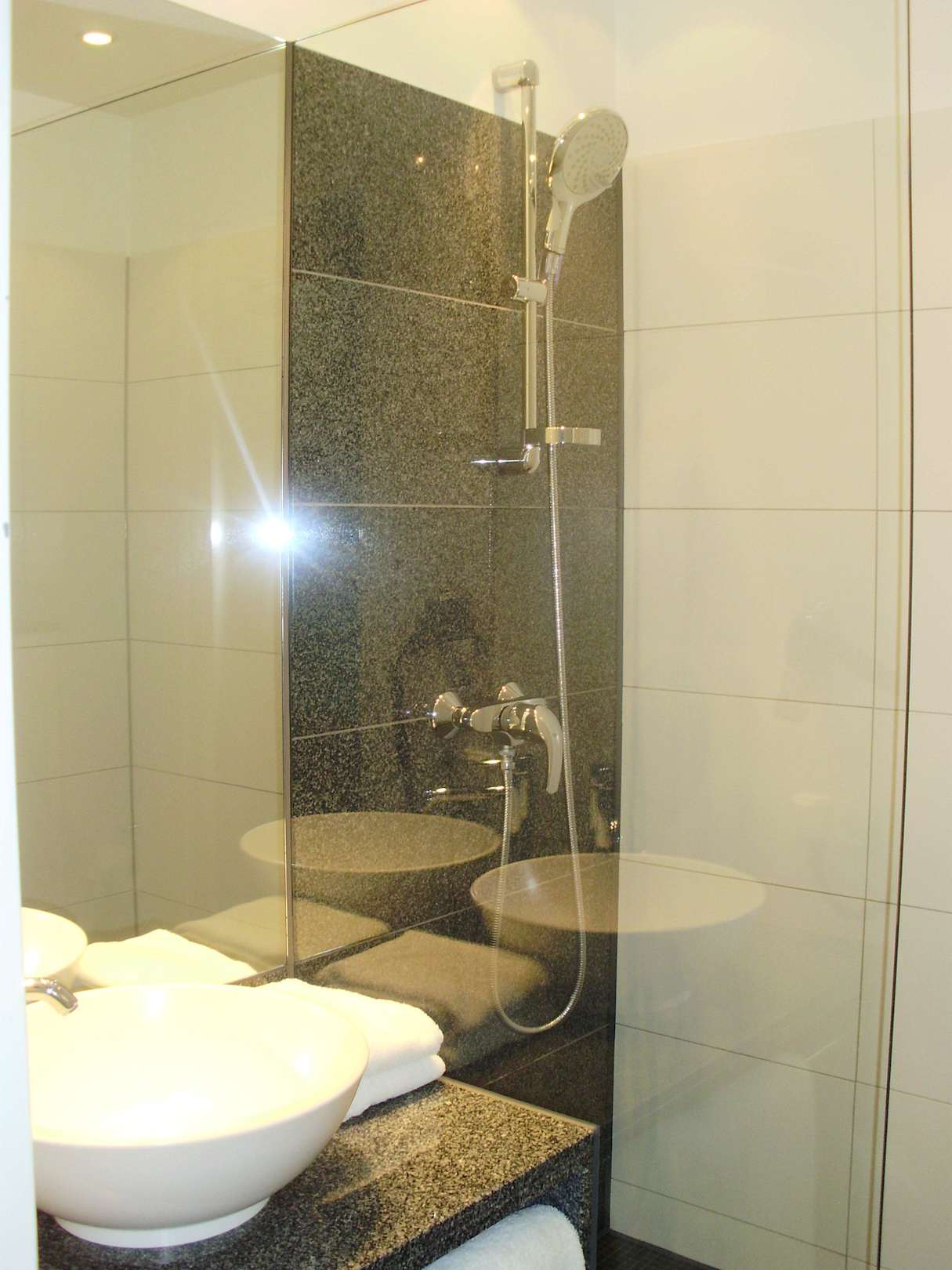 Bad mit schicker Dusche und Waschbecken