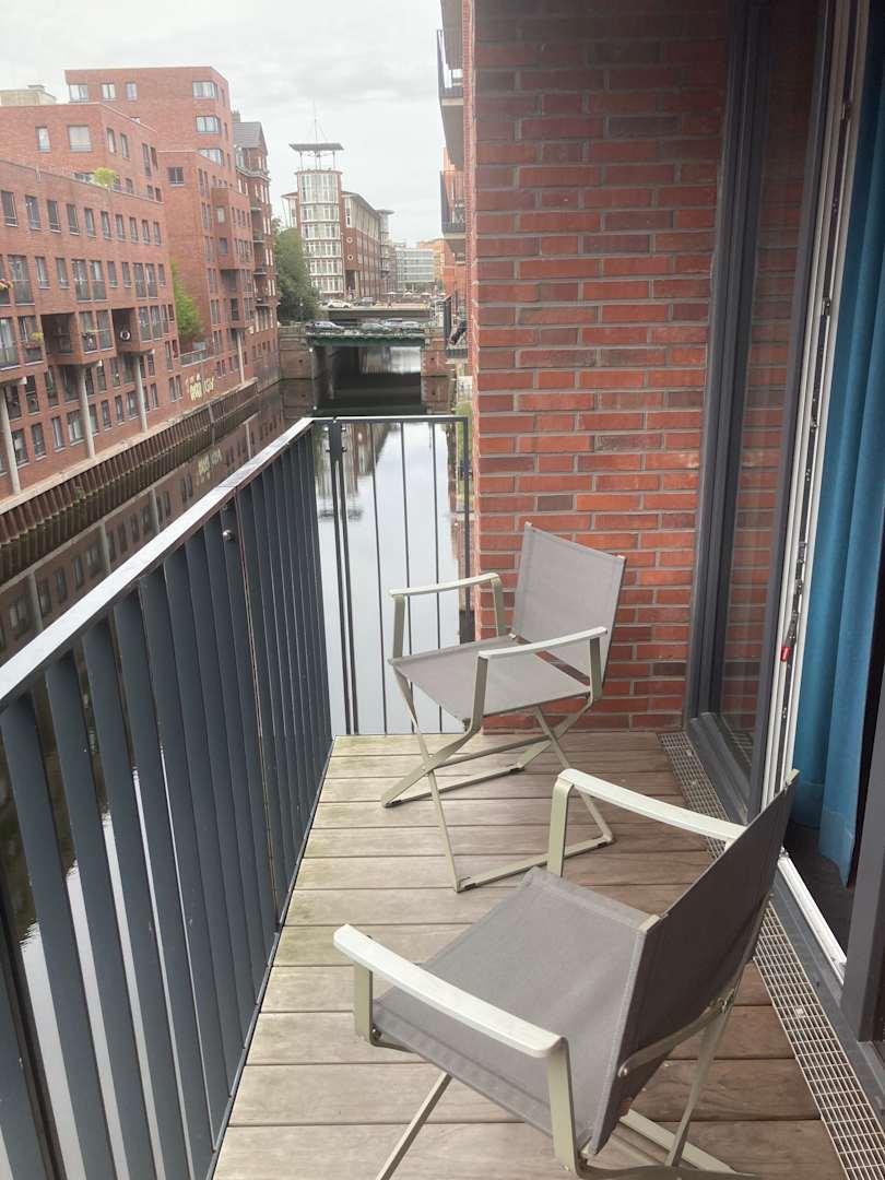 Unser Balkon mit Blick auf den Fleet