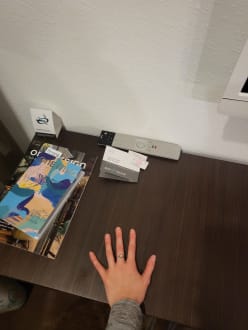 Arbeitsplatz, Schreibtisch. Winzig.