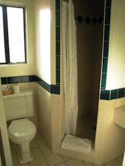 der Zugang zur Dusche ist sehr schmal