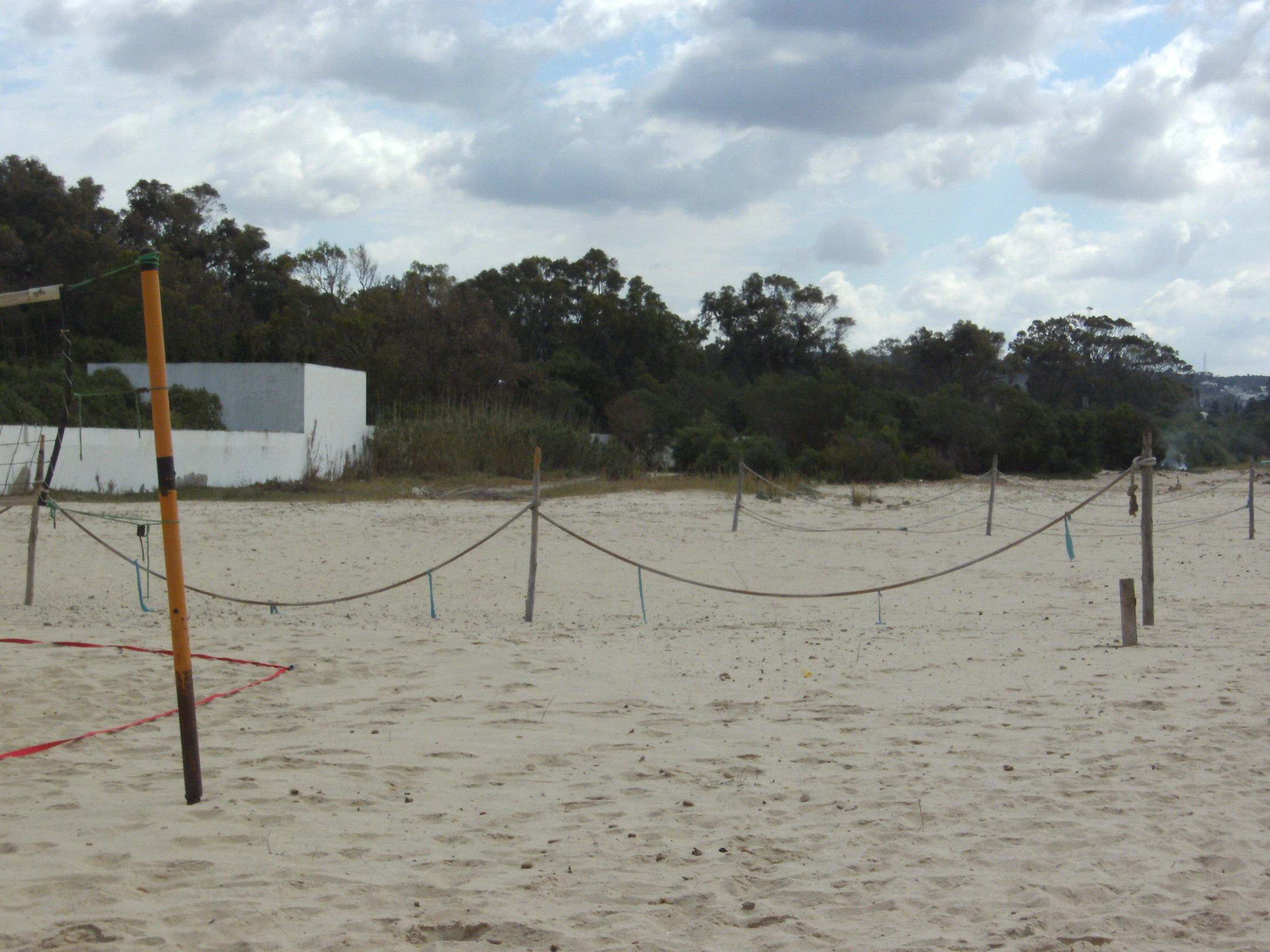 Beachvolleyballplatz, alles kaputt und Bruch