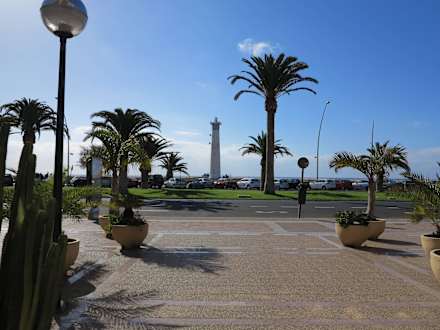 Blick vom Hoteleingang zumLeuchtturm