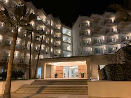 Der Hoteleingang bei Nacht