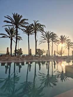 Beim Abendessen auf der Terrasse mit Blick auf den Pool.