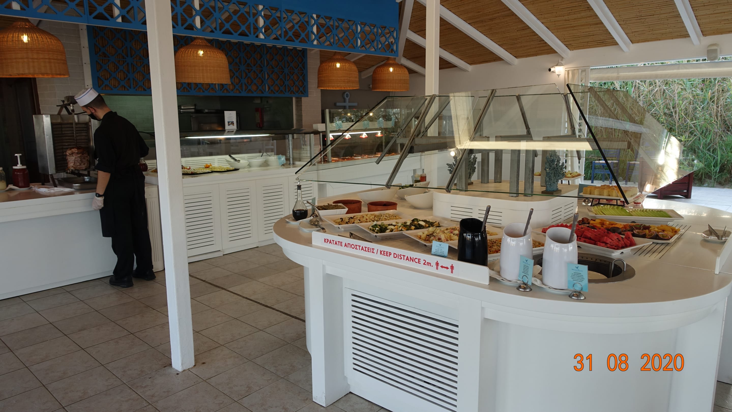 Griechisches REataurant am Strand, Corona Buffet mit Bedienung