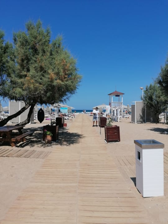 Weg zum Strand. Rechts daneben ist die Strandbar.