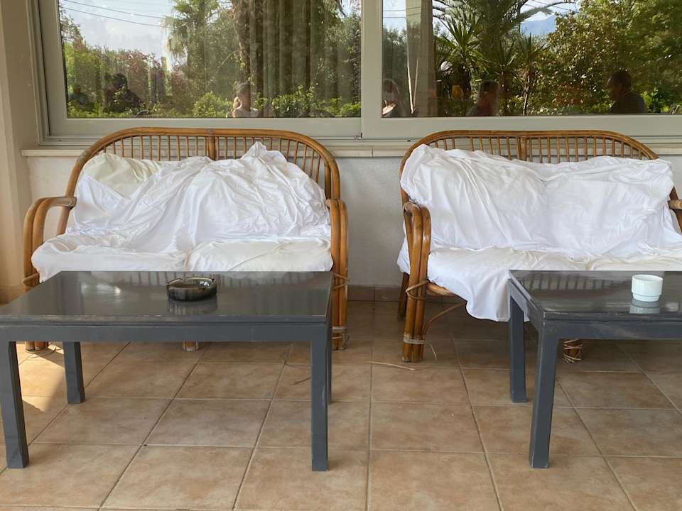 AußenansichtDie Sofas bekommen zwar täglich ein neues Laken, aber die Kissen werden noch nicht mal aufgeschüttet