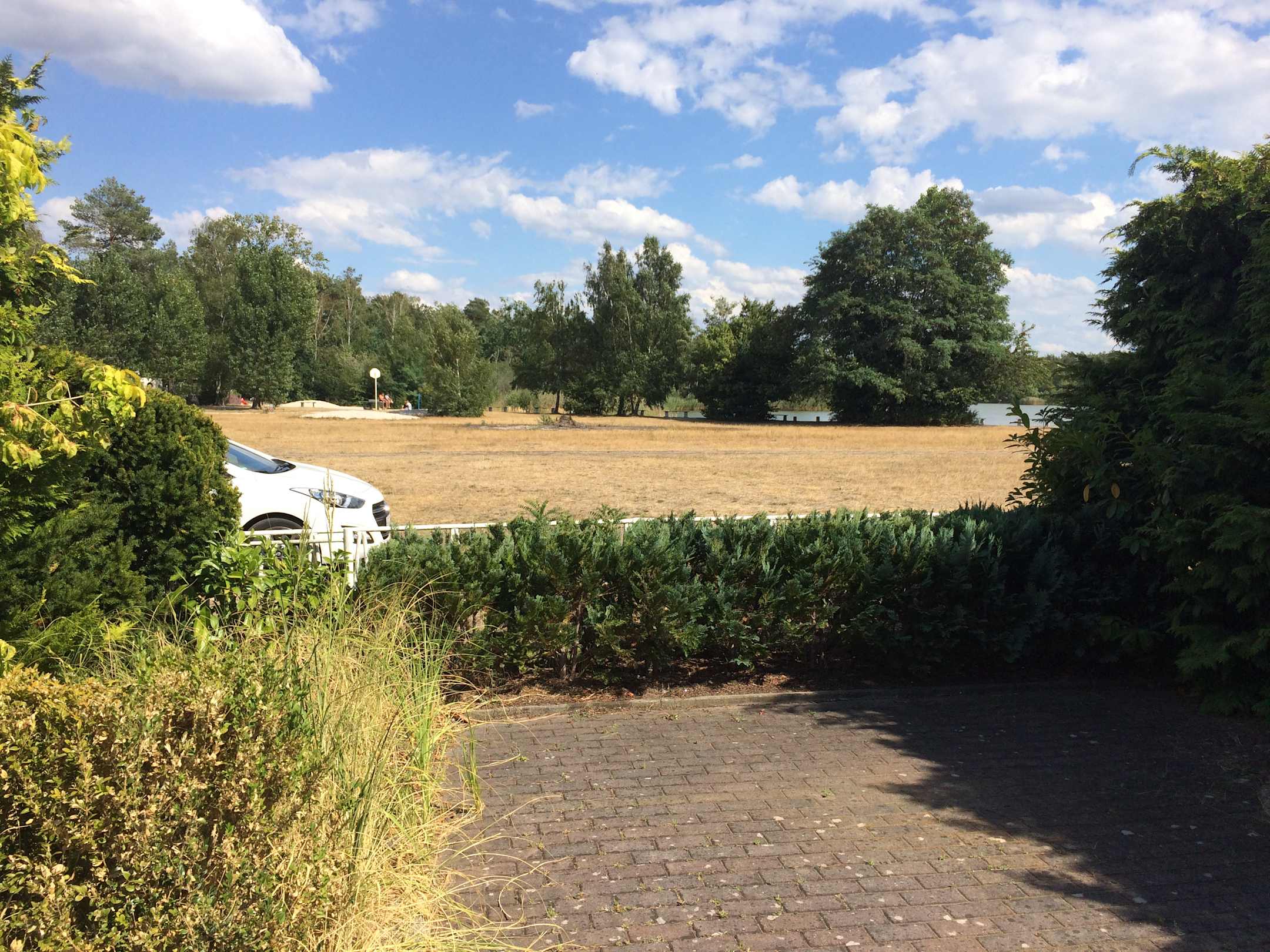 das war unser morgentliche Blick aus dem Garten zum See.