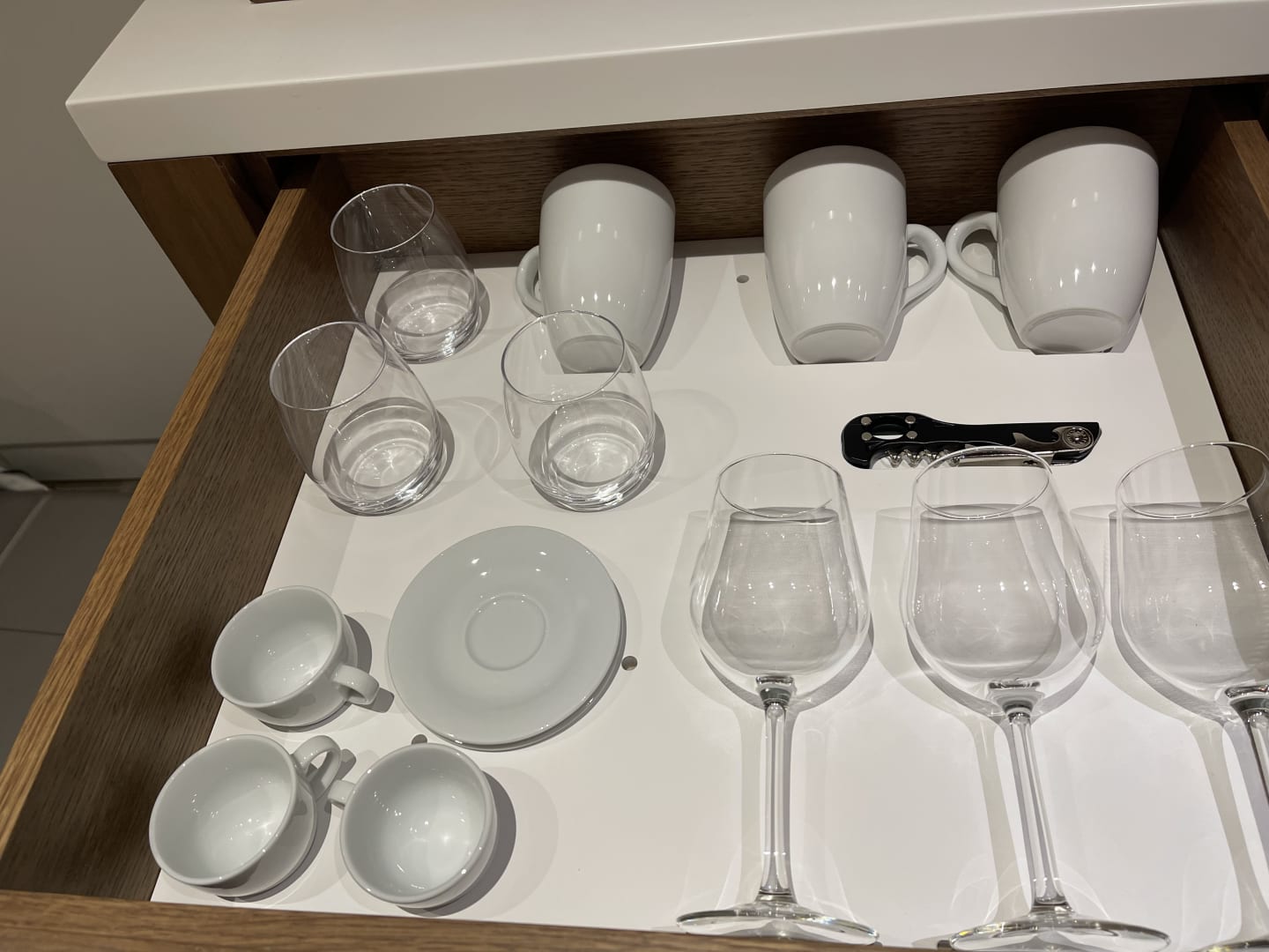 Minibar Gläser und Geschirr