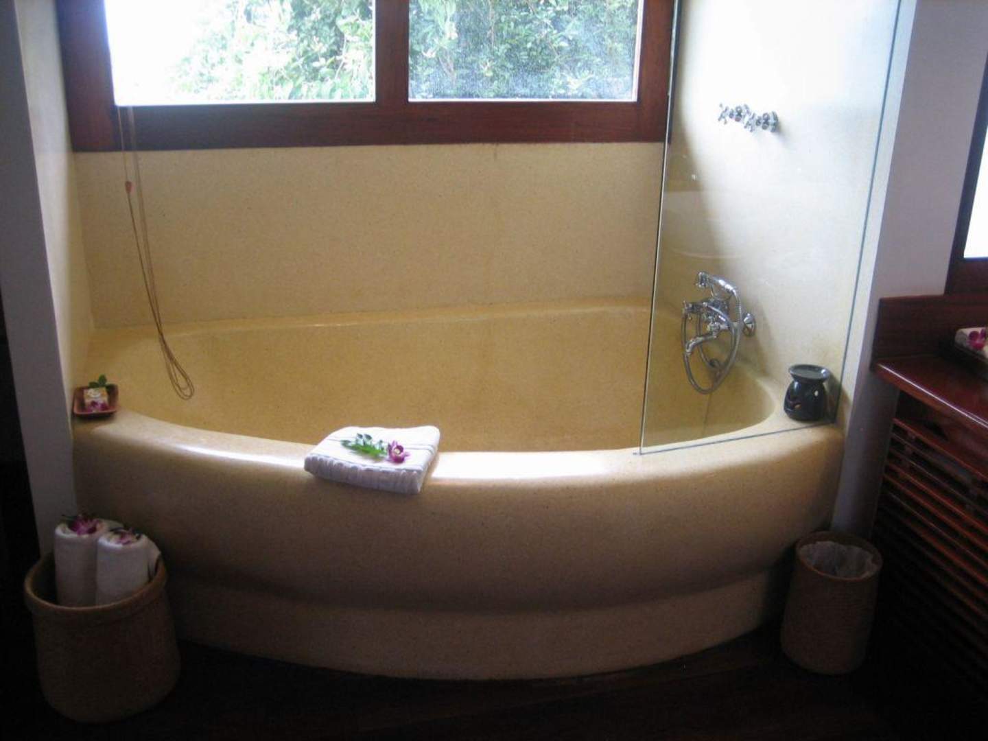 Die Badewanne wurde aus Naturstein gemeißelt und fühlt sich unter den Füßen ganz toll an...