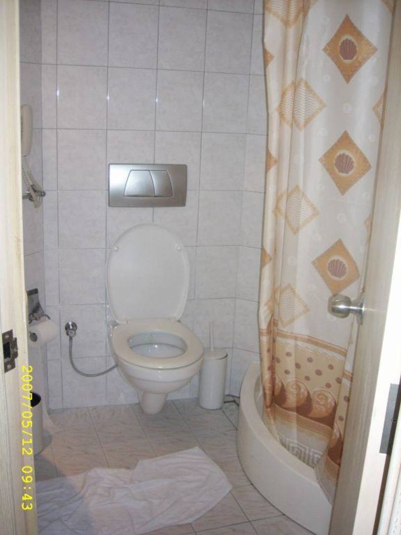 Bad mit Plastikdusche