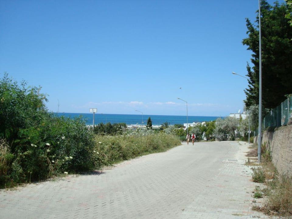 Diese Straße muss man runter, um zum Hotelstrand zu gelangen. Abends leider auch wieder hoch! Aber der Ausblick entschädigt.