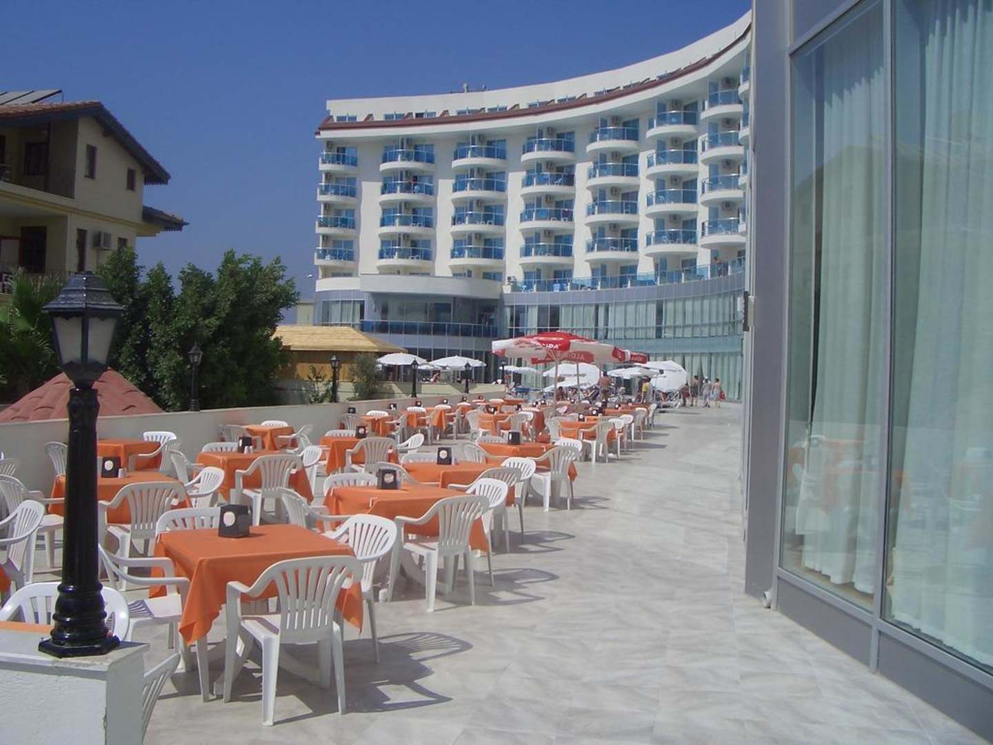 Frühstück und Abendessen im FreienHier konnte man in angenehmer Atmosphäre im freien frühstücken und abendessen