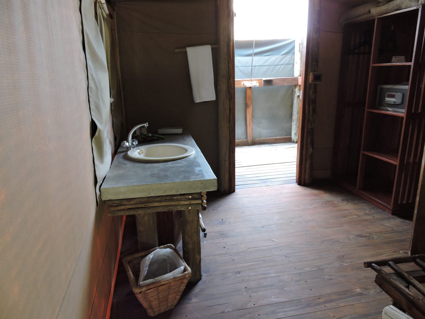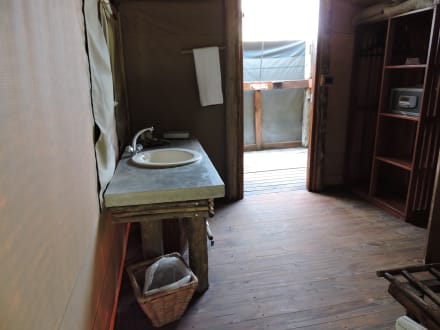 Waschbereich mit Blick auf Außendusche