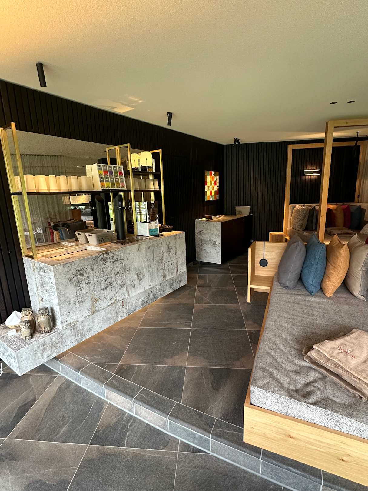 Bereich für Tee und Wasser im „Haus der Stille“