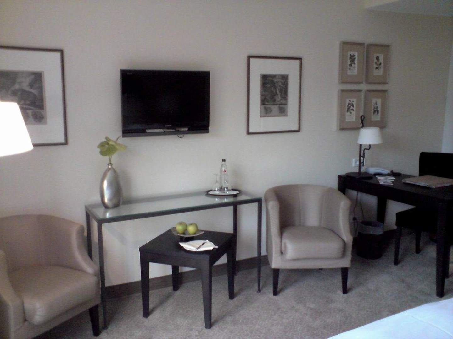 Blick zum Flach-TV mit Satprogramm