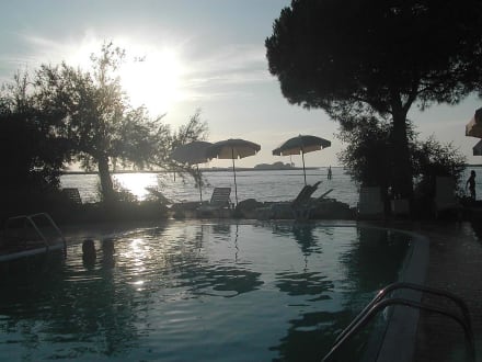 Der große Pool und dahinter gleich das Meer