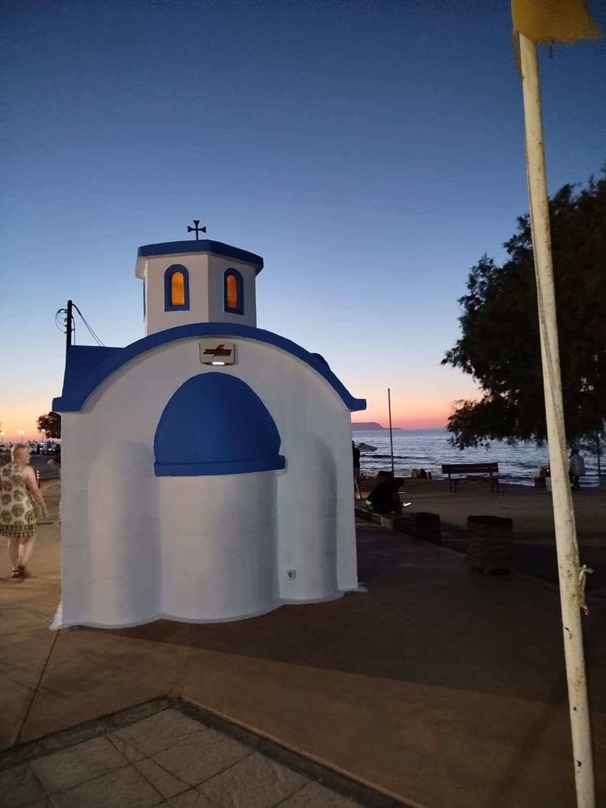 Direkt am Strand die kleine Kapelle mit Ausblick auf den Sonnenuntergang
