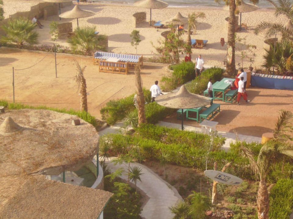 Blick von Hote auf die Außenanlage inklusive Strand