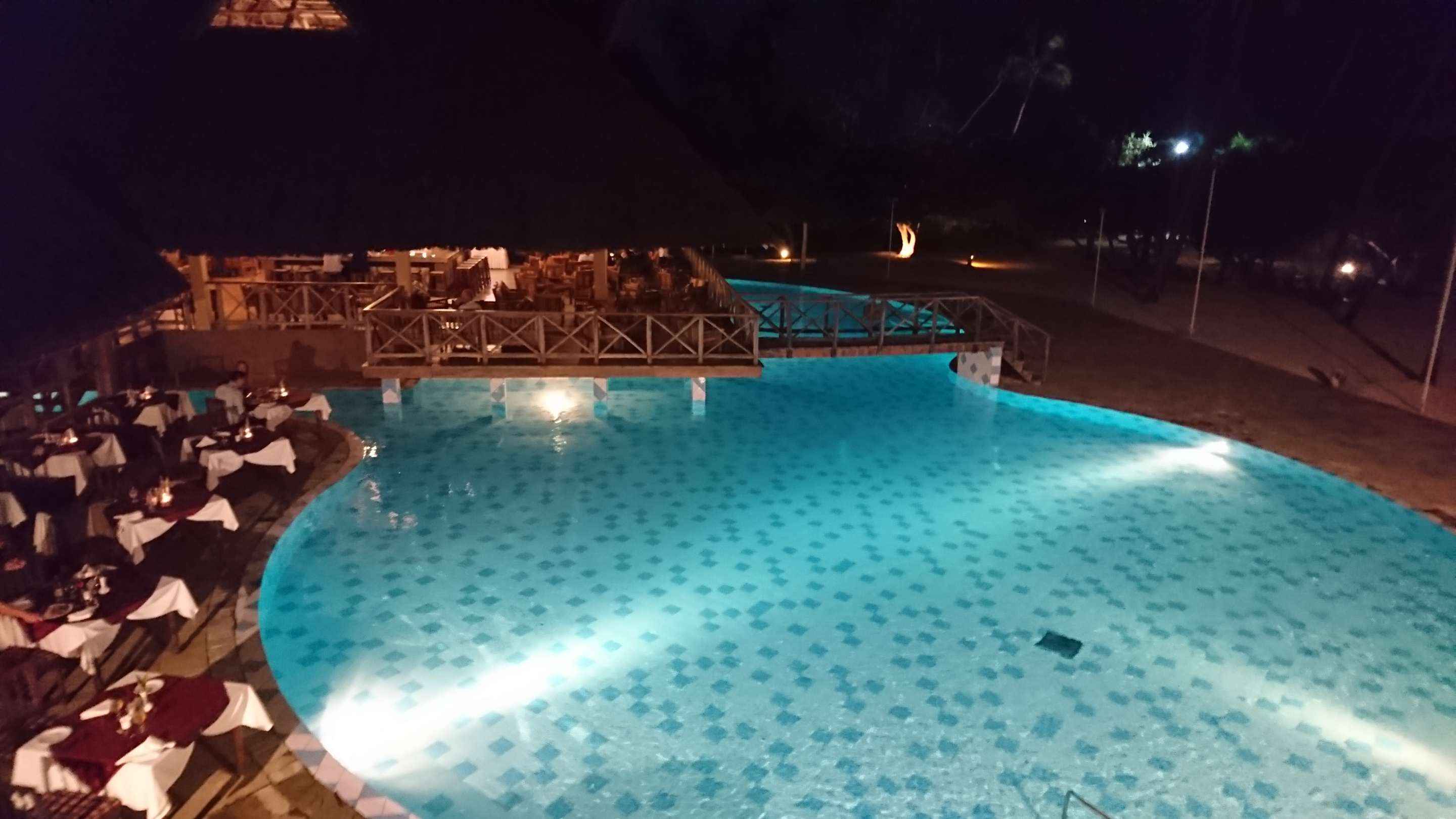 Pool Anlage mit gerichtetem Abend Buffet