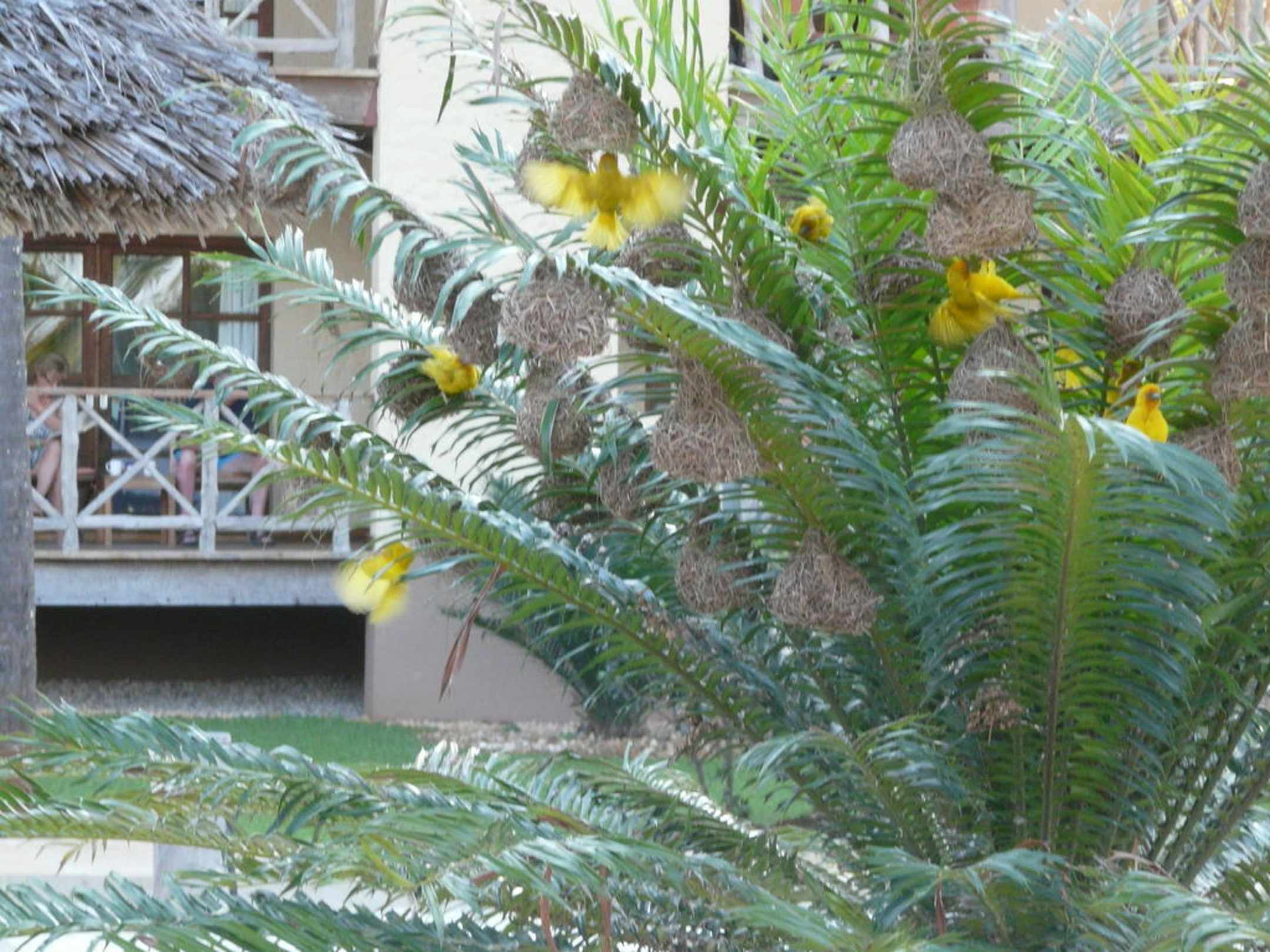 Webervögel im Palmenbusch