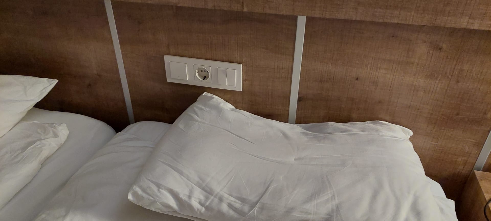 Steckdose und Schalter direkt hinter dem Kopfende. Geht gar nich!