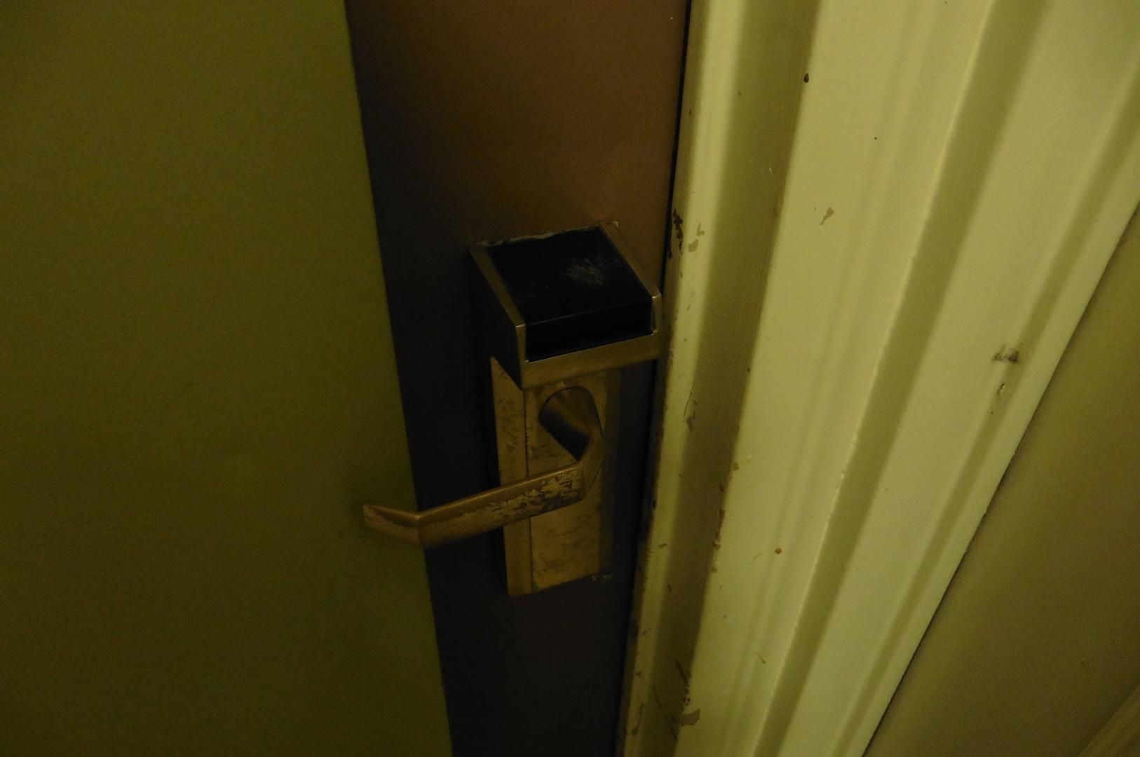 Tuerklinke zu unserem Zimmer. Dreckig & abgenutzt.