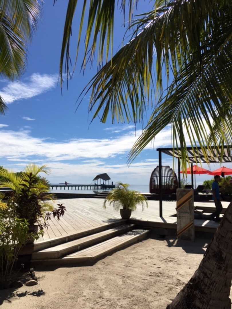 Pooldeck mit Blick auf Ankunftsjetty