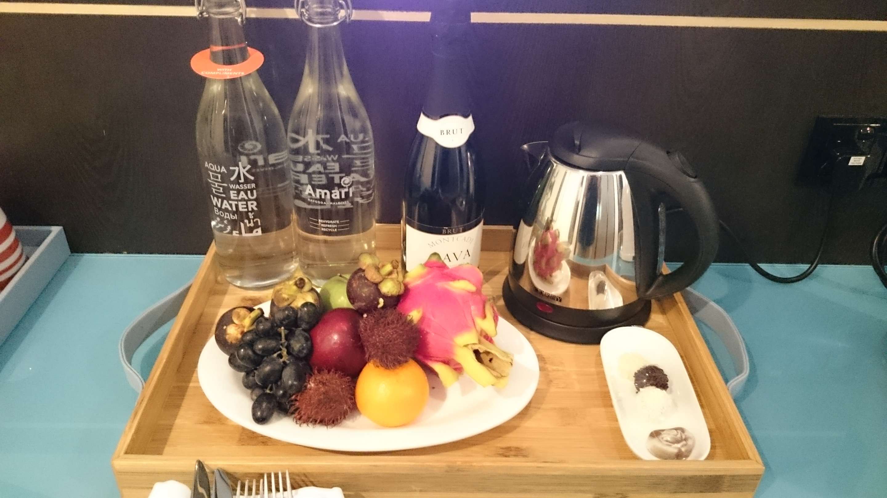 Villa - Begrüßungs - Obstteller mit Champane