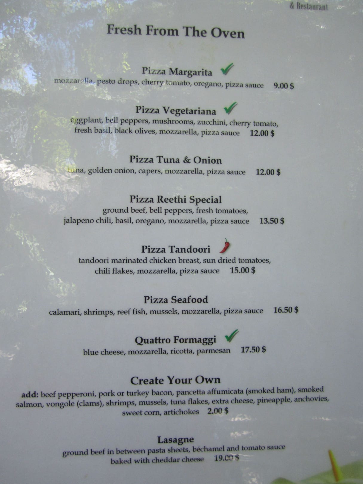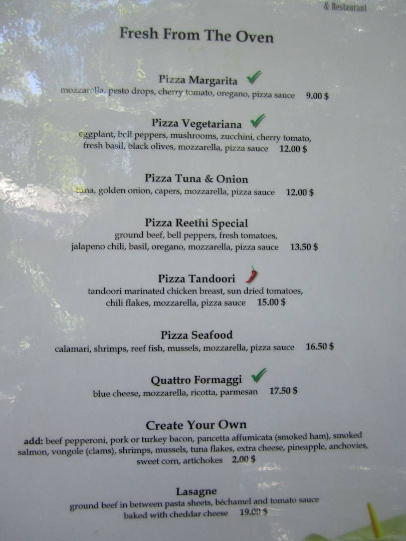 Preise Pizza Restaurant NH Collection Maldives Reethi Resort