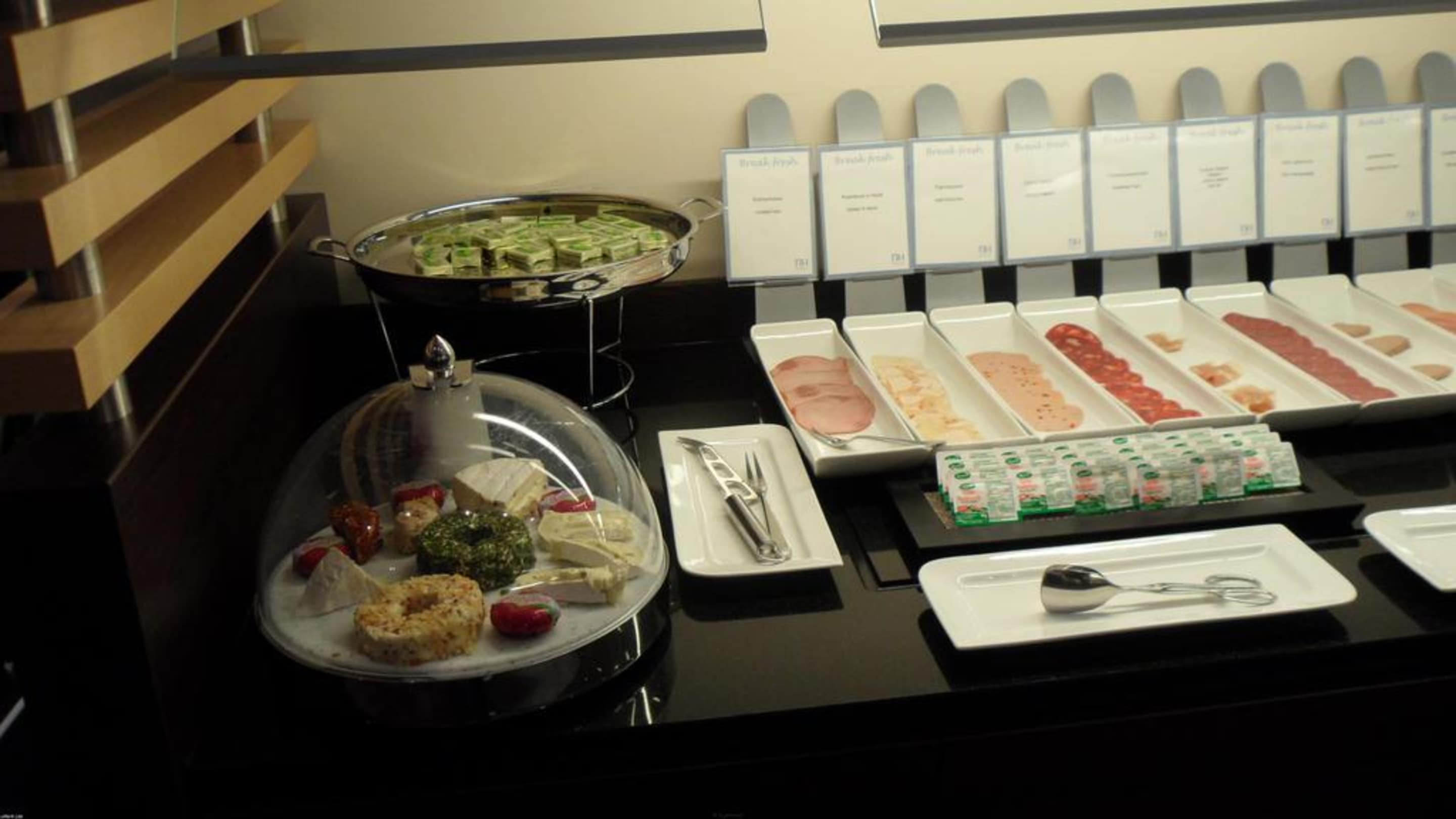 FrühstücksangebotButter, Margarine, Wurst- und Käsevariationen, übersichtlich und sauber angeordnet und beschriftet - es wurde immer nachgelegt
