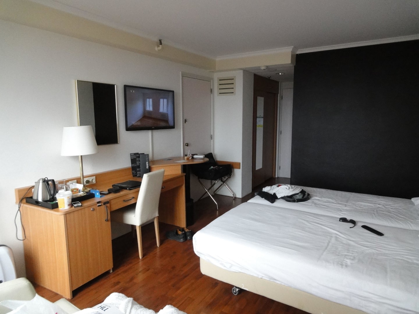 Mit großem TV und auch mit Wasserkocher