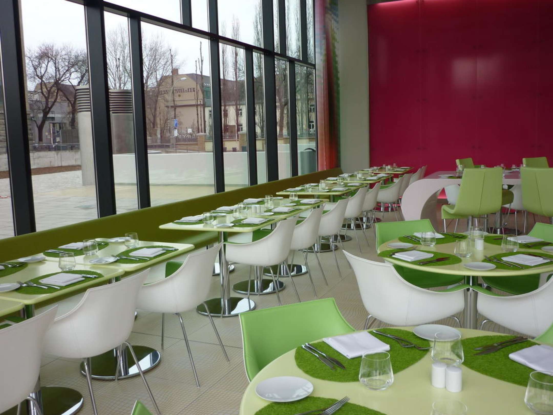 Blick auf das farbenfroh gestaltete Restaurant